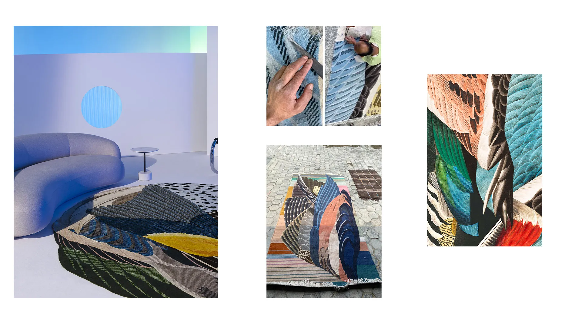 In 2020 the fluttery plumage of cc-tapis’ Feathers Collection will include 3 new species: Feathers Rectangular, Feathers Freeform big and Feathers Runner. A flock of unique rugs which were born from Maarten De Ceulaers affinity for birds. The works of John James Audubon and John Gould have regularly served as a source of inspiration to De Ceulaer who pairs and clips digital scans together, often tweaking and morphing them into further abstraction.