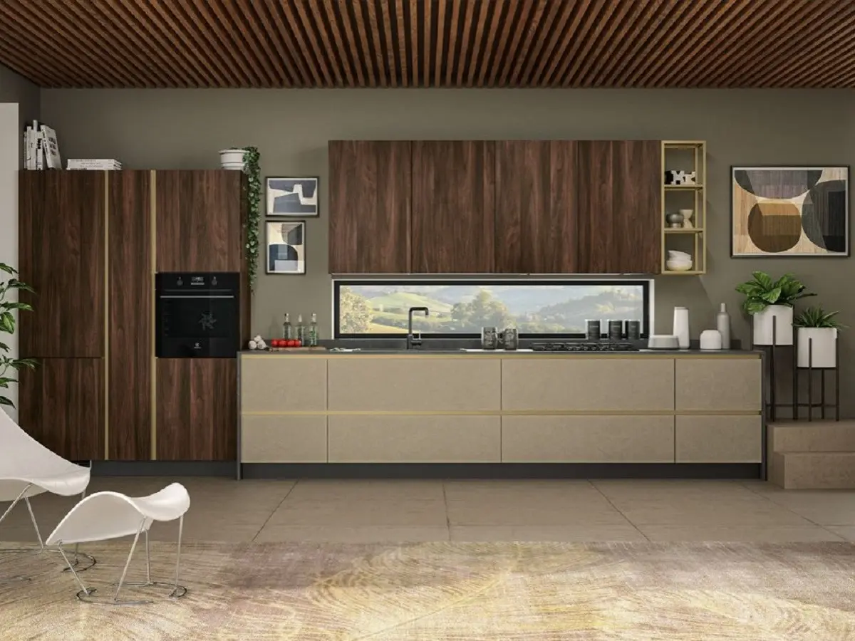The kitchen that completes your home. Classic mood and simple lines, Chantal is the right balance between practical design and timeless style. The warm notes of wood furnish at their best, the brass-coloured finishes make the room unique and refined.