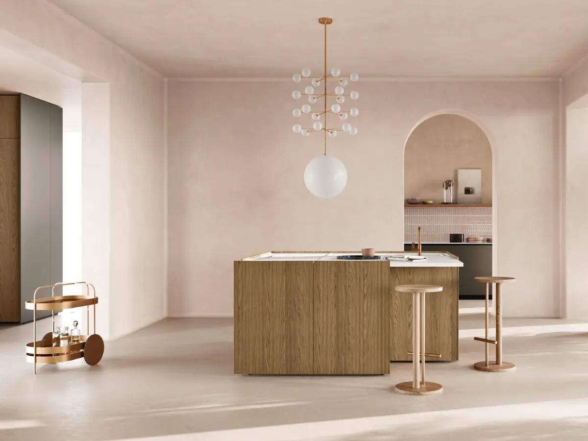 The ME line is the most forward-looking expression of Meson’s research into kitchen furnishings. The collections belonging to it share a door with an aluminium framework and glass fronts in cutting-edge materials. The ME world suggests a home concept in which the kitchen can extend its distinctive elements to other rooms, becoming the key to determining the whole interior architecture.