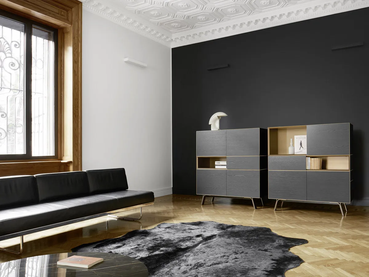 of Domino sideboards, to the refined elegance and dynamic versatility of Cabaret sideboards, to the other sideboards presented in new versions, with various types,