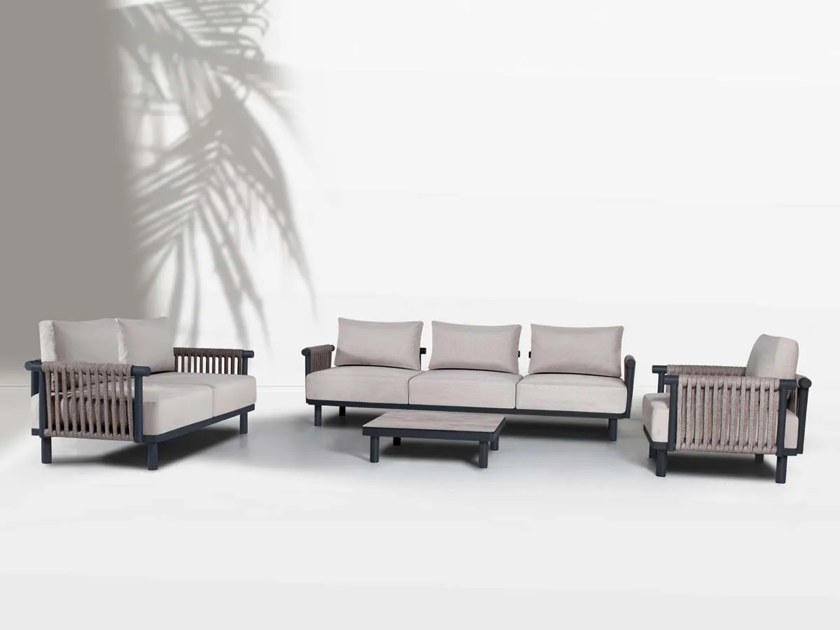 BREEZE offers a privileged outdoor experience with its high-performance technical details. The luxurious form created by natural-looking woven ropes is complemented by ergonomic cushions with mesh fabric.