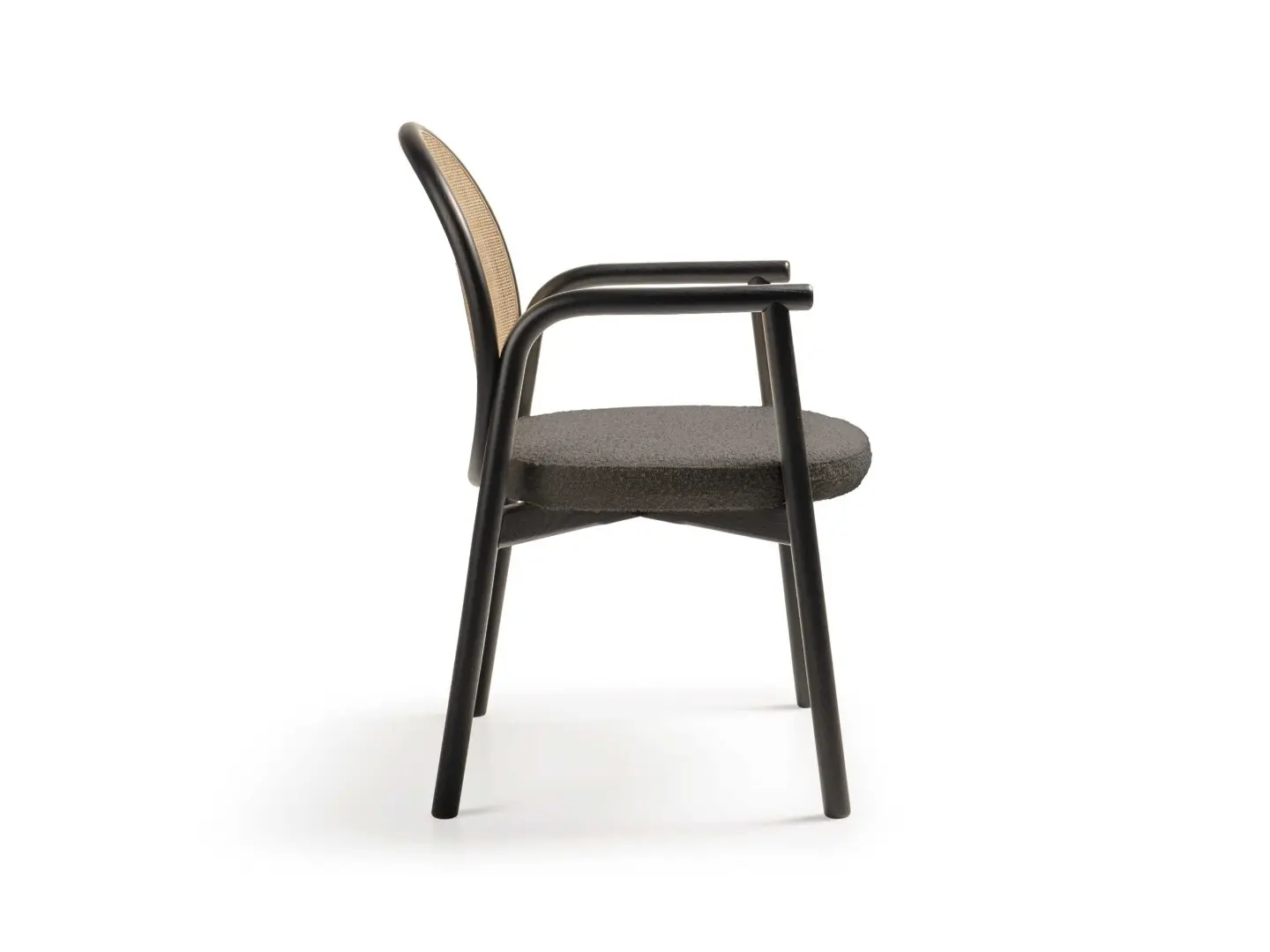 Poltroncina lounge sofisticata frutto di maestria artigianale e ricercatezza stilistica. Perfetto connubio di tradizione e modernità che si definisce nell’armonico incontro di materiali diversi come il legno e la paglia di Vienna.